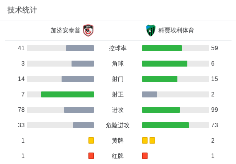 下半场补时第3分钟,科贾埃利体育球队哈比卜-凯塔吃到第二张黄牌。