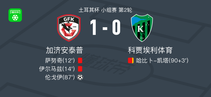 加济安泰普1-0科贾埃利体育,伦戈伊绝杀