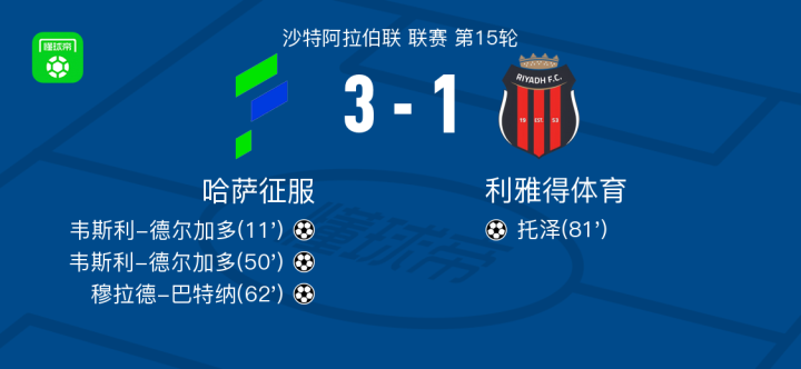 北京时间1月14日,沙特职业联赛第15轮展开较量,哈萨征服坐镇主场迎战利雅得体育。比赛中,哈萨征服率先打破僵局,韦斯利-德尔加多接穆拉德-巴特纳的助攻首开纪录。随后,韦斯利-德尔加多再次建功,完成个人本场比赛的梅开二度。穆拉德-巴特纳也以一记精彩破门为球队扩大领先优势。进入下半场,利雅得体育由托泽接叶海亚-谢赫里助攻扳回一城。最终,全场比赛结束,哈萨征服以3比1战胜利雅得体育。