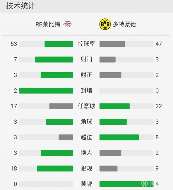 全场比赛结束,多特蒙德客场1-1战平RB莱比锡。