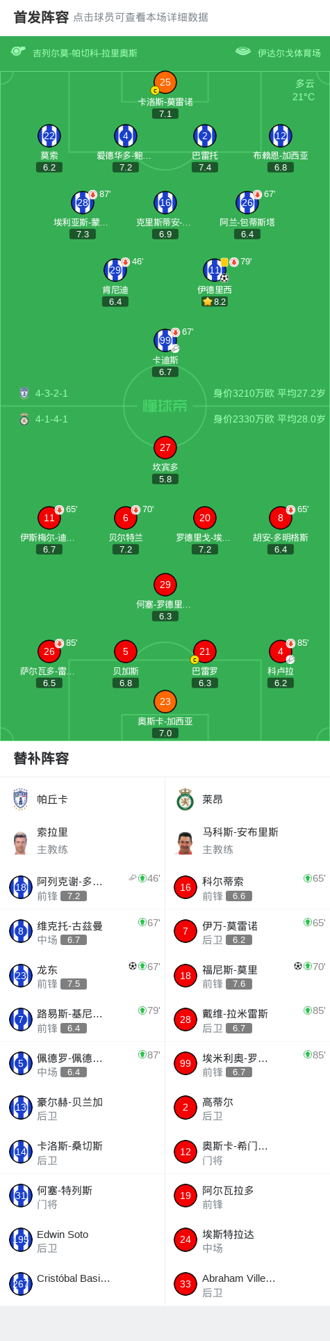 帕丘卡2-1莱昂,龙东、伊德里西破门