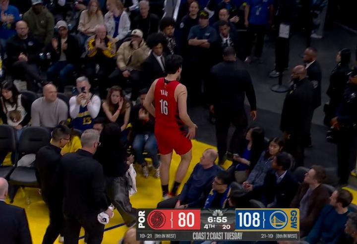 在第四节即将进入垃圾时间之际,杨瀚森在一次拼抢中出现了令所有中国球迷揪心的一幕,他的后脑勺不慎撞到了身后勇士后卫威尔-理查德的膝盖,痛苦倒地。在经过短暂离场治疗后,杨瀚森问题不大重返比赛,也让关心他的球迷松了一口气。
