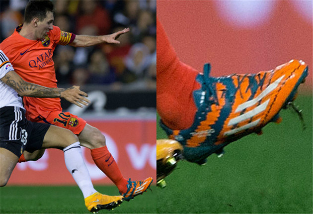 这两双专属的鞋带孔都是没有多余的,但是我们再来看看梅西脚上穿的球鞋