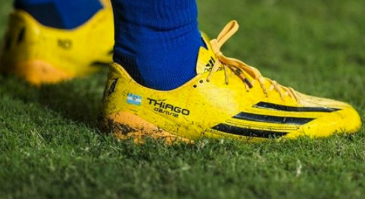 鞋垫上印有罗萨里奥Batallón球场的地图,那是梅西儿时经常与小伙伴们为了踢球经常需要钻洞进入的一个废弃的军事基地。