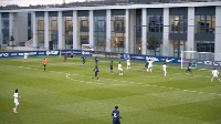 上半场开场,犀旺队率先开球向前推进,但未形成有效的机会。随后巴黎开始逐渐占据场上主动,利用中场的有效组织和渗透,频频威胁犀旺队球门。门将曹鼎宸多次完成亮眼扑救,力保球门不失