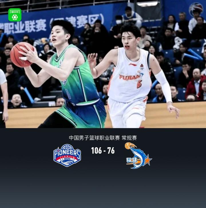 北京时间1月14日中国男子篮球职业联赛 常规赛,天津先行者对阵福建晋江文旅。上半场天津郑昊燃轰下23分联手大卫-詹姆斯、哈姆雷特一度领先18分,半场天津54-41福建,下半场福建一度追至5分分差,但随后天津迅速拉开分差,,末节天津林庭谦16分带队轰出29-10彻底拉大分差,最终天津106-76福建。