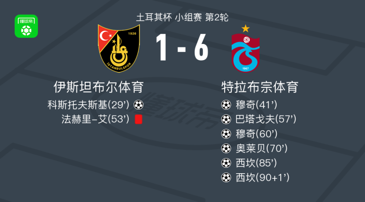 特拉布宗体育6-1狂胜伊斯坦堡士邦,穆奇梅开二度,西坎两球