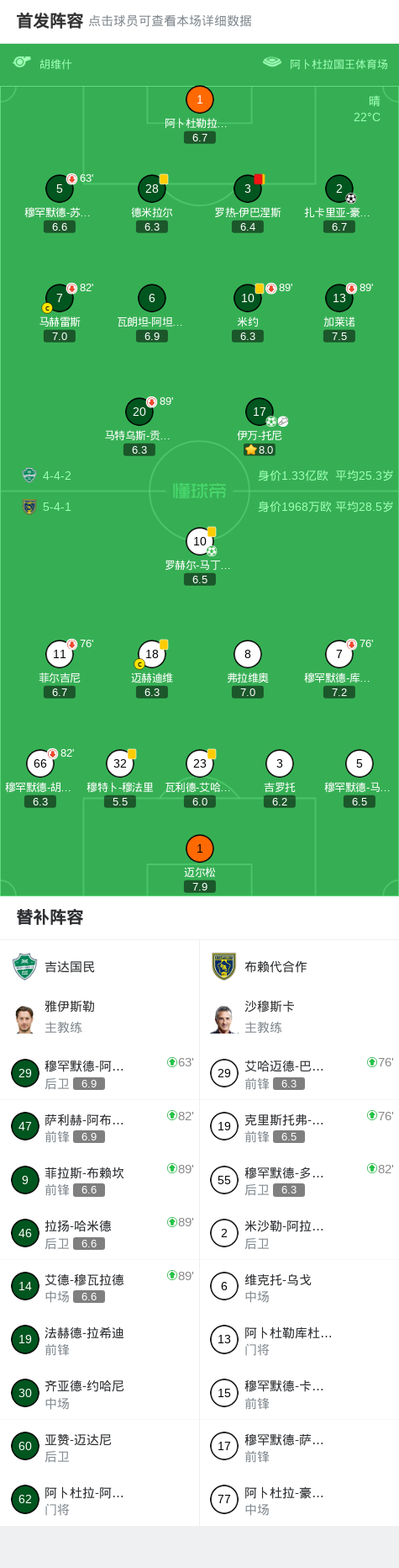 第83分钟,吉达国民球队罗热-伊巴涅斯吃到第二张黄牌。