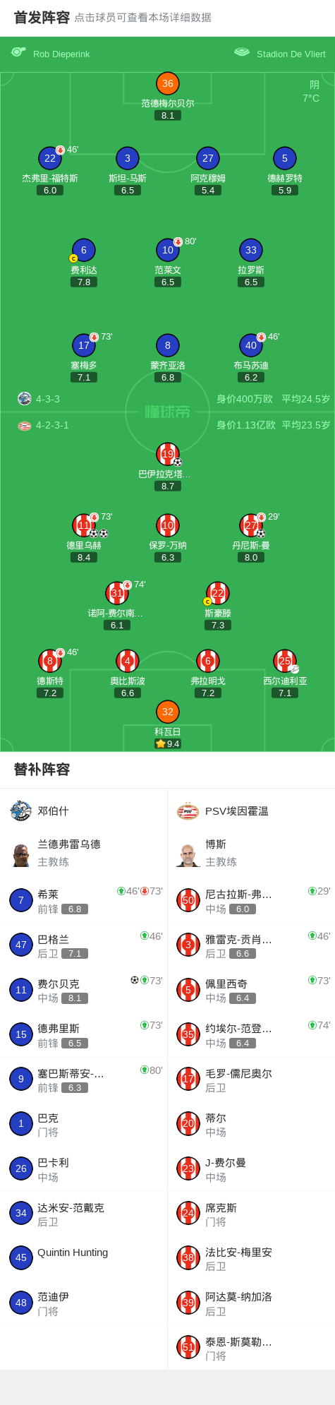 PSV埃因霍温4-1大胜邓伯什,德里乌赫两球,巴伊拉克塔雷维奇破门