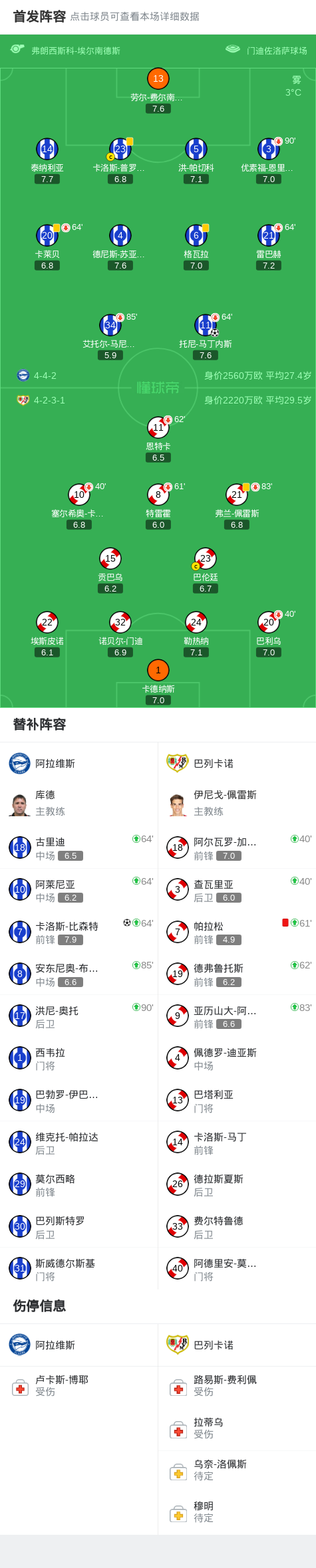 阿拉维斯2-0巴列卡诺,托尼-马丁内斯建功,卡洛斯-比森特锁定胜局