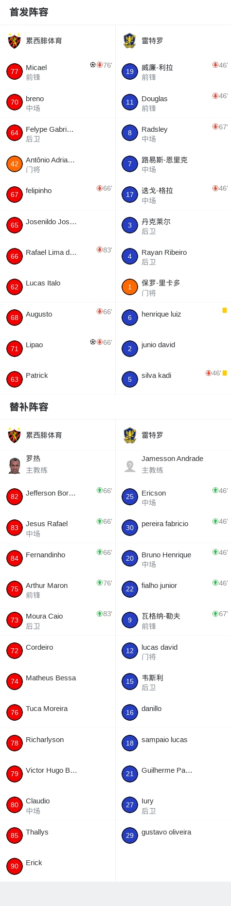 累西腓体育2-0雷特罗,Micael破门,Lipao锁定胜局