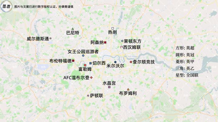 伦敦主要足球俱乐部分布图:英超七队、五级联赛全覆盖