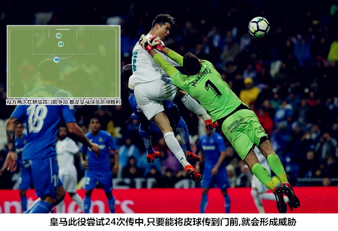 在本赛季已经结束的比赛中,赫塔菲场均完成17.5次犯规,这个数据高居五大联赛球队榜首。此役,赫塔菲的犯规(18次)刚好达到了赛季平均水准,在上半场的大部分时间段内,客队的侵略性防守策略都取得了不错的效果,皇马花了很长一段时间才成功地将战火燃烧到前场。