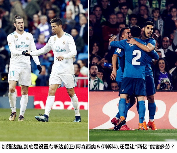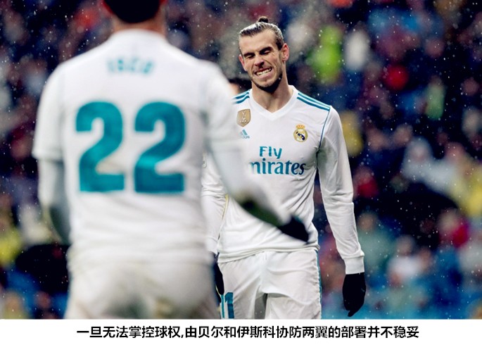 以上种种都表明,皇马将在次回合较量中承受不亚于首回合的防守压力。本场的4213/442阵型固然可以因为BBC的倾力付出达成攻守平衡的效果,但C罗和贝尔在两翼深度回防后的弹开效果已不及往昔,指望科瓦契奇从中路打开缺口显然有些冒险。在高位压迫容易出现中场脱节的情况下,这套阵容一旦没有球权在手很容易陷入攻守失据的被动境地。因此,即便是4213已经通过了测试,也不能排除齐达内会像首回合一样将BBC拆开使用,将阿森西奥或巴斯克斯调入首发的可能性。