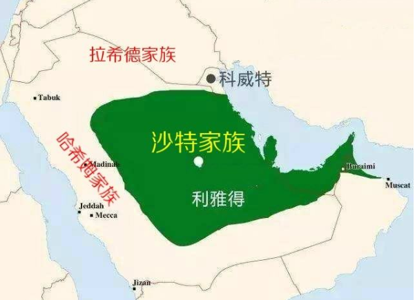 一战后,瓦解的奥斯曼帝国退场,英法在半岛建立了汉志(哈希姆家族,麦加为首都)、内志(沙特家族,利雅得为首都)多个政权。