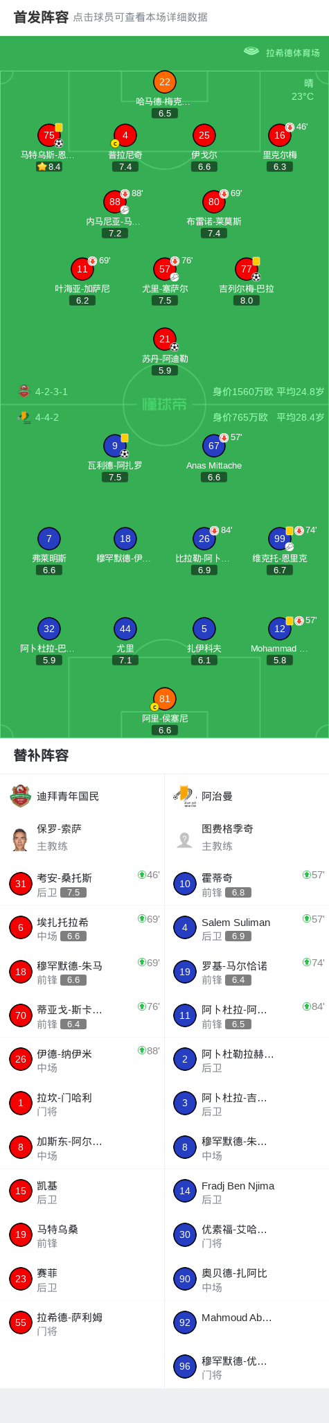 第23分钟,迪拜青年国民球员内马尼亚-马克西莫维奇助攻马特乌斯-恩里克打入一球。