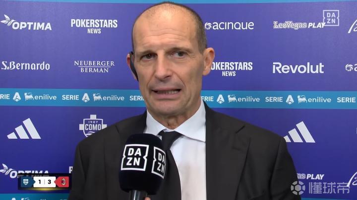 米兰在意甲第16轮补赛客场3-1击败科莫,主教练阿莱格里在赛后接受了DAZN的采访。
