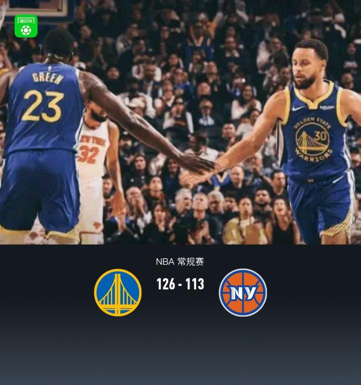 北京时间1月16日NBA 常规赛,金州勇士对阵纽约尼克斯。本场尼克斯布伦森缺阵,上来尼克斯打出15-5开局,随后勇士追分上半场完成反超,半场勇士62-59尼克斯,第三节勇士火力全开37-28拉大至两位数领先,末节尼克斯反扑无果,最终勇士126-113尼克斯。