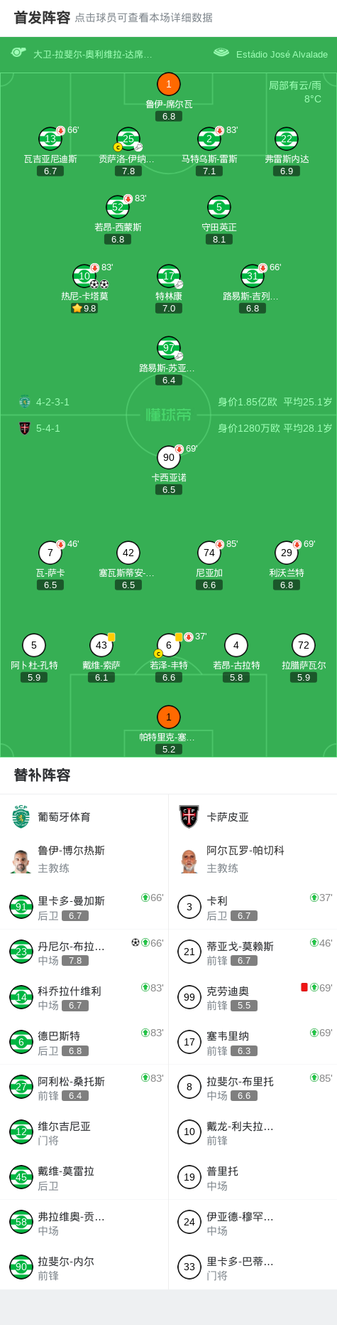 葡萄牙体育3-0大胜卡萨皮亚,热尼-卡塔莫双响,丹尼尔-布拉干萨破门