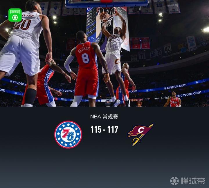 费城76人恩比德33分5板3助,马克西22分5板9助;克利夫兰骑士杰伦-泰森39分5板3助,亨特16分3板4助