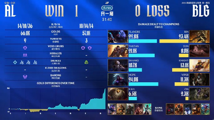 这回武器挺无敌的,BLG再次让一追二战胜AL取得两连胜