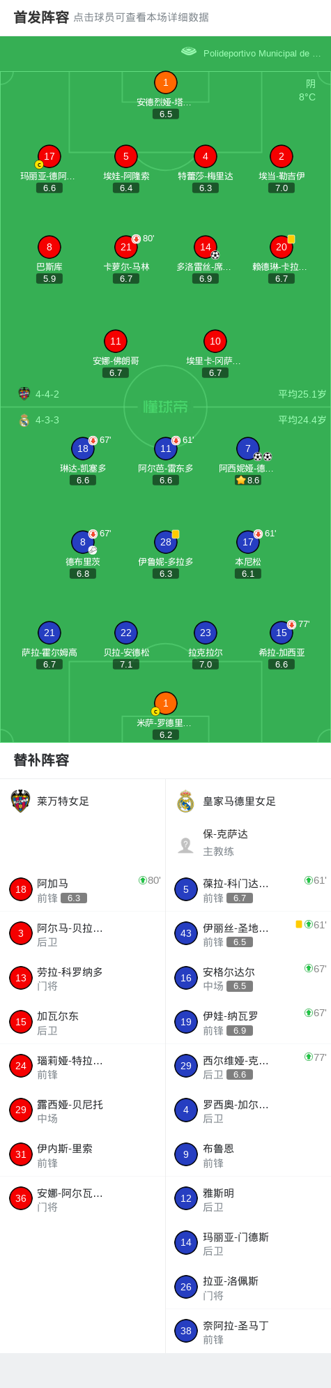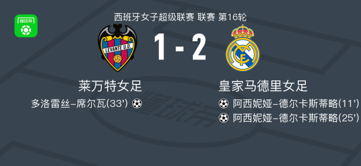 皇家马德里女足2-1莱万特女足,阿西妮娅-德尔卡斯蒂略独中两元