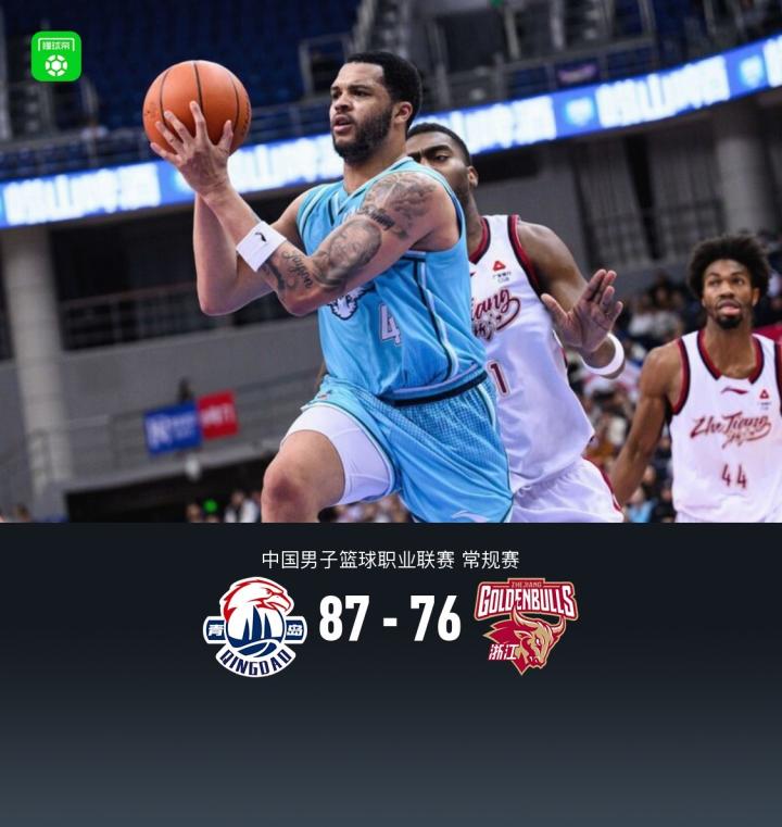 第四节青岛赵嘉义拿下8分,浙江盖比-约克拿下8分,最终青岛87-76战胜浙江