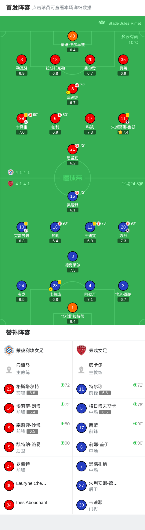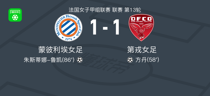 蒙彼利埃女足1-1第戎女足,方丹先拔头筹,朱斯蒂娜-鲁凯扳平比分