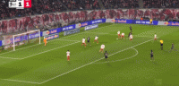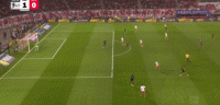 第14分钟,凯恩直塞,卡尔突入禁区传中,球传大了