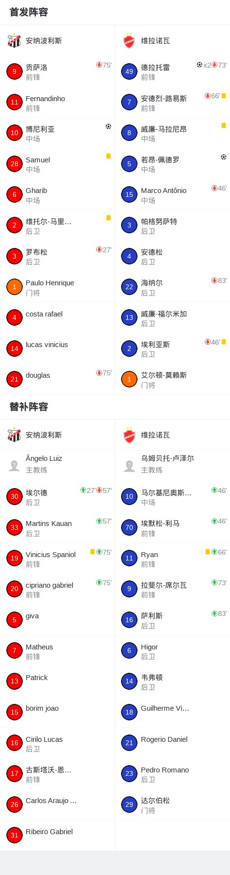 维拉诺瓦3-1安纳波利斯,德拉托雷双响,若昂-佩德罗破门