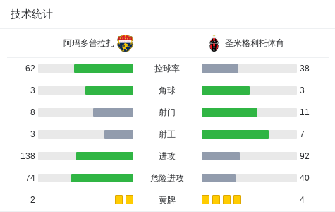 第44分钟,圣米格利托体育球员adrian bethancourt打入一球。