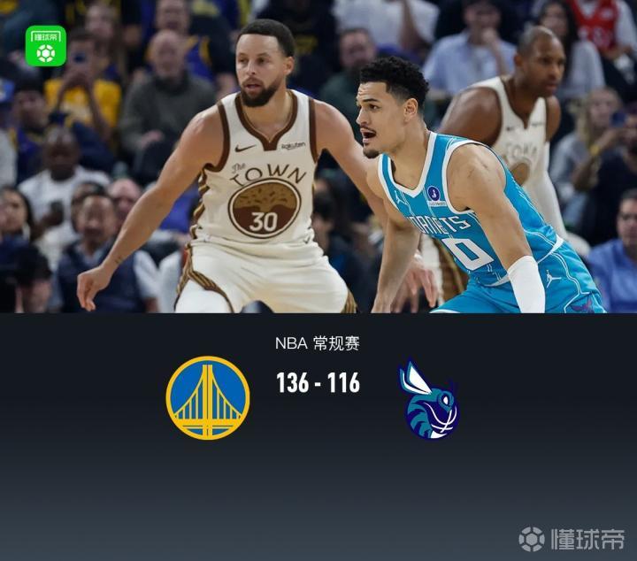 北京时间1月18日NBA 常规赛,金州勇士对阵夏洛特黄蜂。本场勇士巴特勒缺阵,首节勇士火力全开39-28领两位数,半场勇士69-57黄蜂,第三节勇士再度轰出43分领先18分,末节黄蜂无力反扑,最终勇士136-116黄蜂。