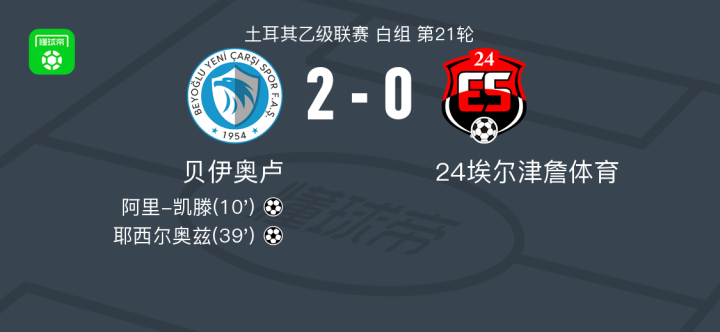 贝伊奥卢2-024埃尔津詹体育,阿里-凯滕建功,耶西尔奥兹锦上添花