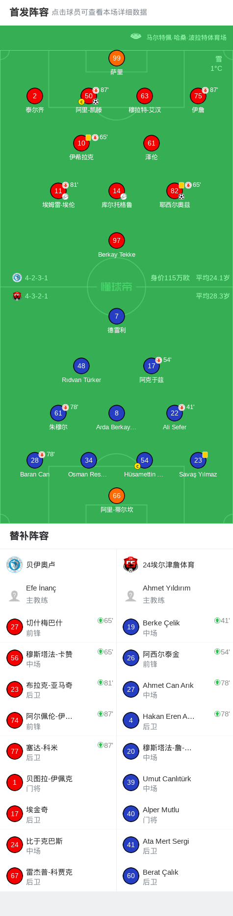 第10分钟,贝伊奥卢球员埃姆雷-埃伦助攻阿里-凯滕打入一球。