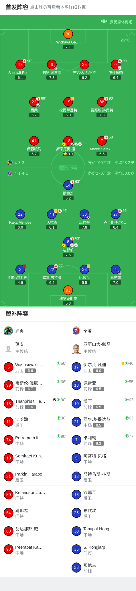 下半场补时第6分钟,罗勇球员斯泰尼奥-儒尼奥尔助攻Thanphisit Hempandan打入一球。