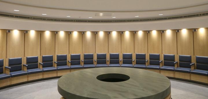 (图)这是一个小型的礼堂,球员和教练可以通过这里的大屏幕观看比赛和训练的视频