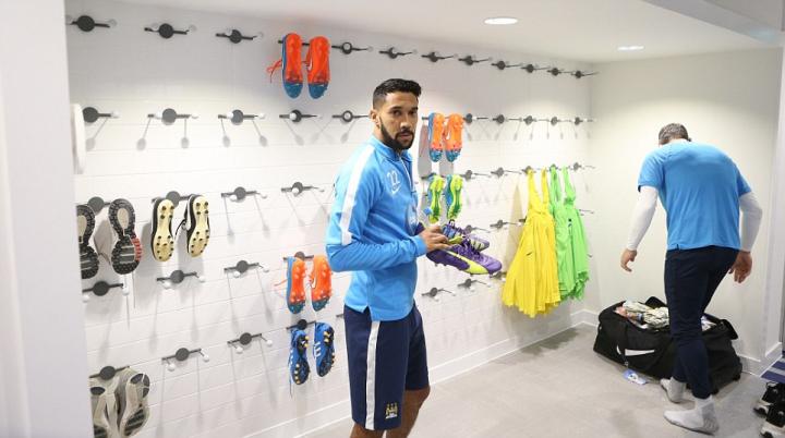 了解了更衣室的设计之后,曼城球员们希望更衣室能够是环形的,并且首尾相连。从写有球员名字的牌子来看,说西班牙语的球员在一块儿,巴西球员和英格兰球员各自在一块儿,哈特和卡巴雷罗也在一起。