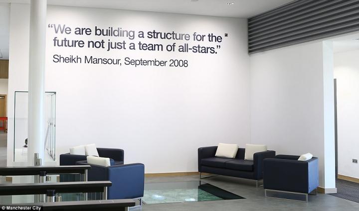 (图)曼苏尔球场的目标已经成为现实,他的这段名言被放在了曼城足球学院的迎宾处