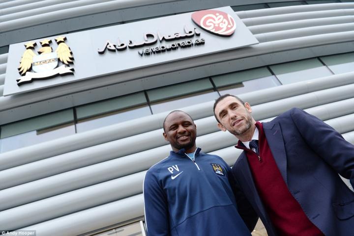 (图)每日邮报记者马丁-基翁接受曾经一起在阿森纳效力过的好朋友维埃拉的邀请参观了曼城足球学院,后者现在已经是曼城的U21主教练