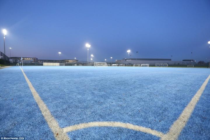 (图)这是一块蓝色的球场,是曼城足球学院16+1块球场之一
