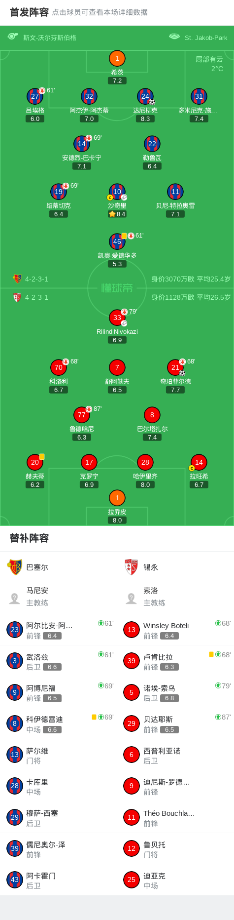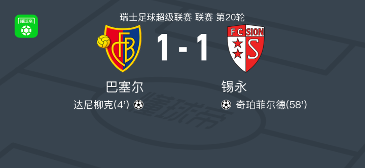 巴塞尔1-1锡永,达尼柳克破僵,奇珀菲尔德救主