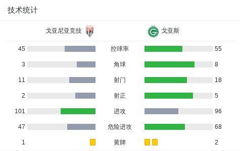 下半场补时第5分钟,戈亚斯球员Jean Carlos·Alves Ferreira打入一球。