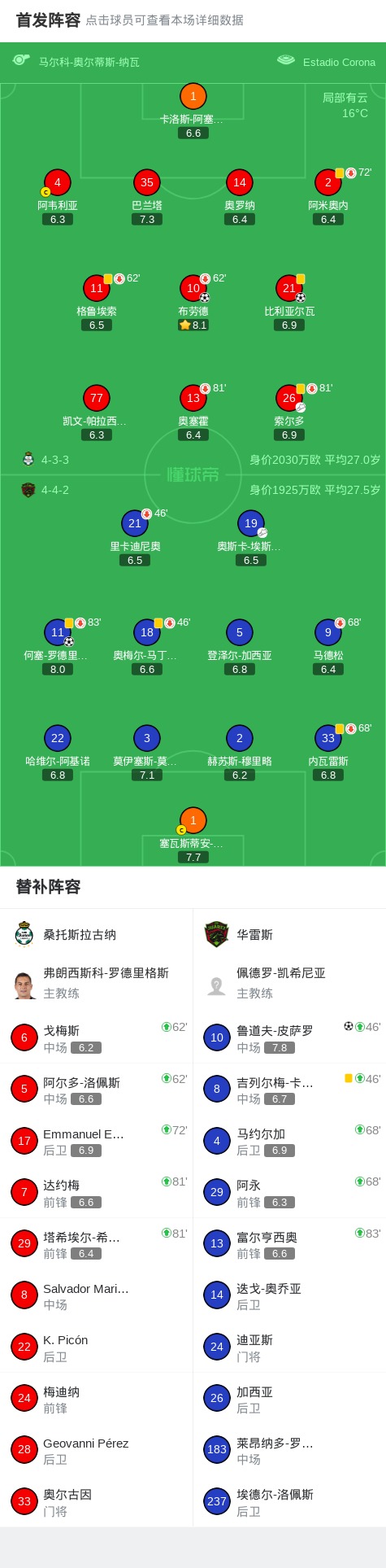 第70分钟,华雷斯球员何塞-罗德里格斯打入一球。