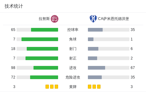 第62分钟,拉努斯球员伊斯基埃尔多斯助攻罗德里戈-卡斯蒂略打入一球。