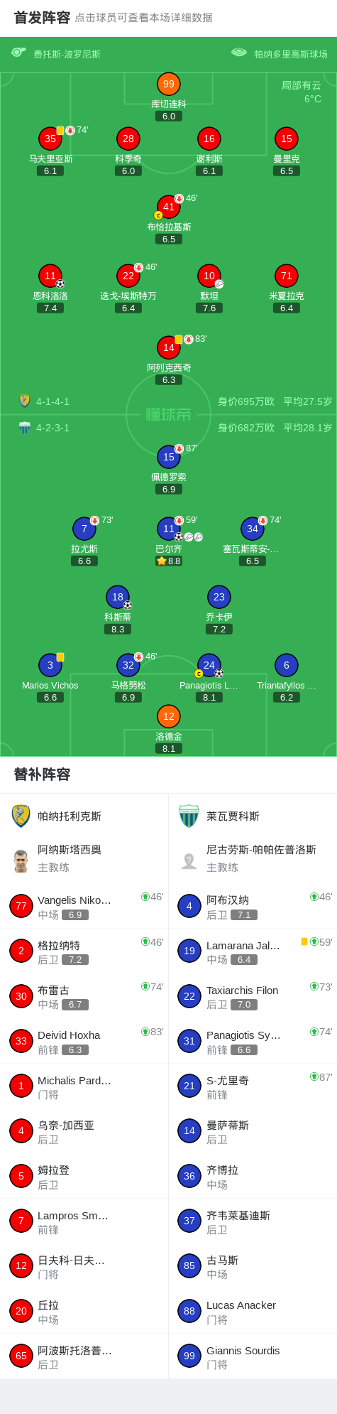 第63分钟,帕纳托利克斯球员默坦助攻恩科洛洛打入一球。