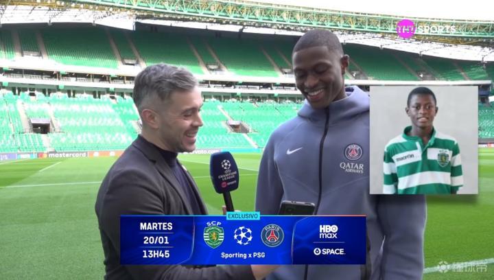 我们现在在葡萄牙里斯本的阿尔瓦拉德球场,和明天比赛的主角之一在一起。努诺-门德斯,很高兴采访你。我想先给你看一张照片,你曾经穿着这件球衣站在这里,这会给你带来怎样的感受?
