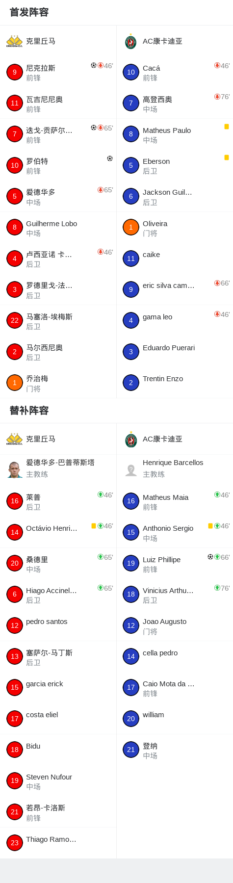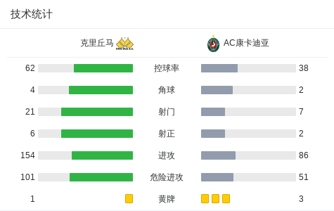 第11分钟,克里丘马球员迭戈-贡萨尔维斯打入一球。