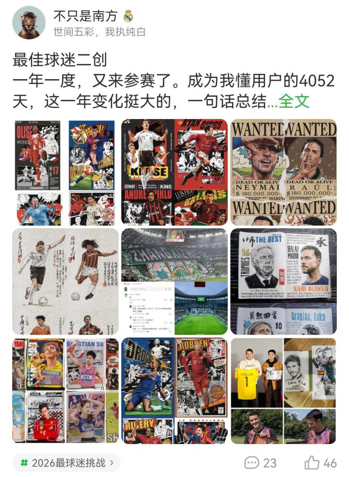 从球迷到创作者,有人用画笔延长热爱的生命线。#2026最球迷挑战 「最佳足球二创」赛道 正式进入高潮阶段,让我们一起走进那些用画笔、手工诠释的足球宇宙。