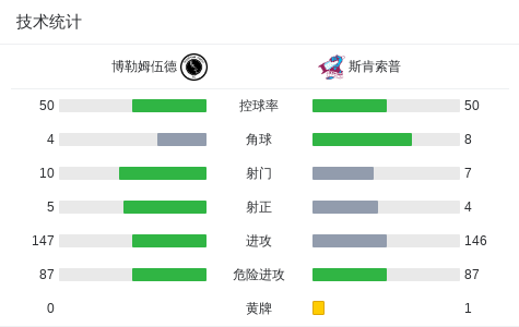 上半场补时第4分钟,斯肯索普球员登顿助攻威斯特布鲁克打入一球。