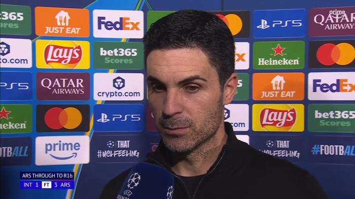 率队在欧冠联赛阶段第7轮客场3-1击败国际米兰之后,阿森纳主教练阿尔特塔接受了来自亚马逊Prime Video的采访。